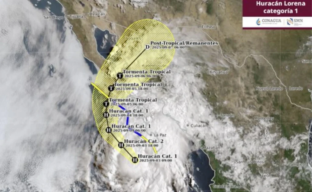 El huracán Lorena, de categoría 1 en la escala Saffir-Simpson, continúa su paso por el Pacífico mexicano, manteniendo en alerta a varios estados