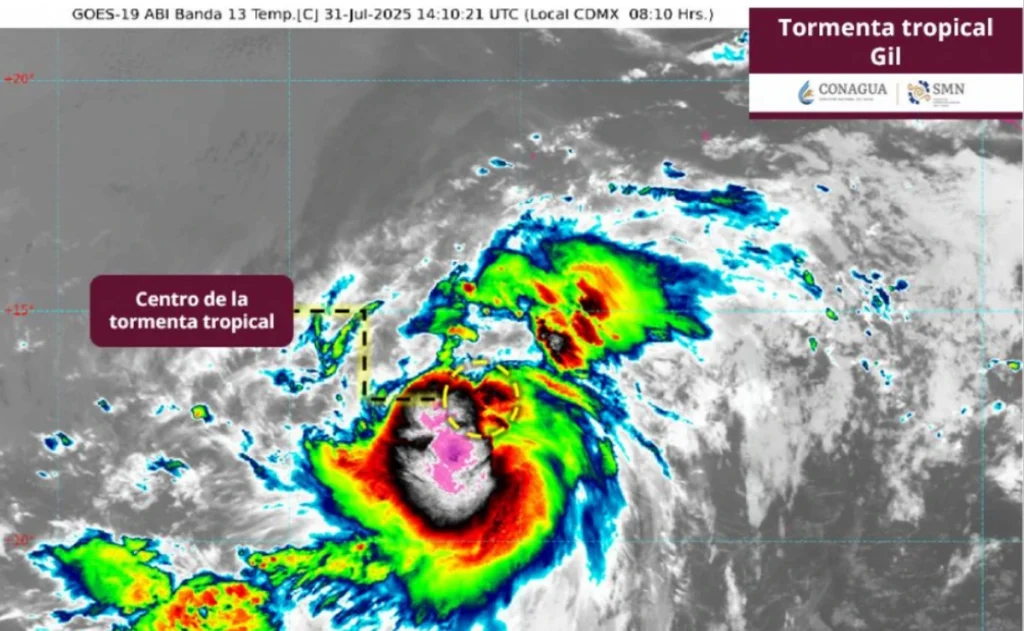 La Comisión Nacional del Agua (Conagua) confirmó la madrugada de este jueves la formación de la tormenta tropical Gil en aguas del océano Pacífico. Según el reporte emitido a las 03:00 horas, el sistema se localizaba a 1,260 kilómetros al sur-suroeste de Cabo San Lucas, Baja California Sur, sin representar, por el momento, un riesgo directo para las costas mexicanas.